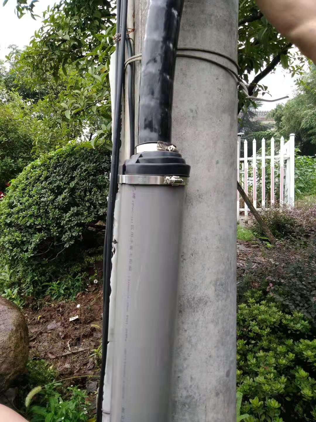 經(jīng)多方面調(diào)查研究表明:市場引線管普遍存在一些問題。例如:雨水進(jìn)入引線管內(nèi),電纜線長時間被水浸泡,雖然有部分處理是在引線管底部打孔來達(dá)到雨水排除效果,但長時間后,會有小動物或者枯葉等雜物進(jìn)入引線管,堵塞排水孔。從而破壞井影響電纜線,可能引起漏電,造成大面積停電等不良后果。